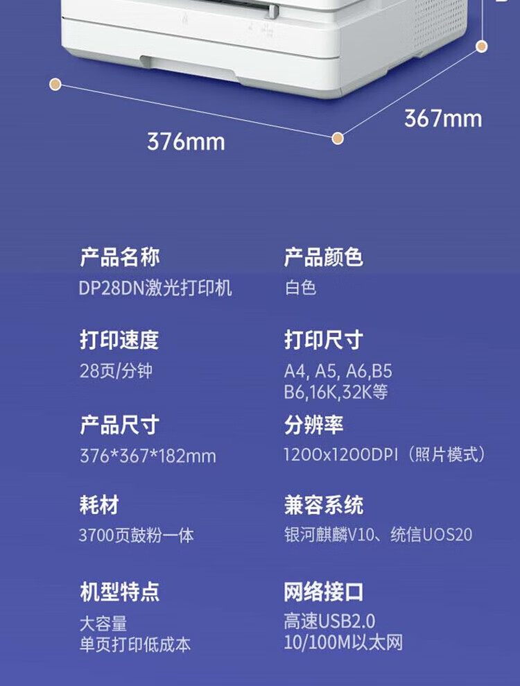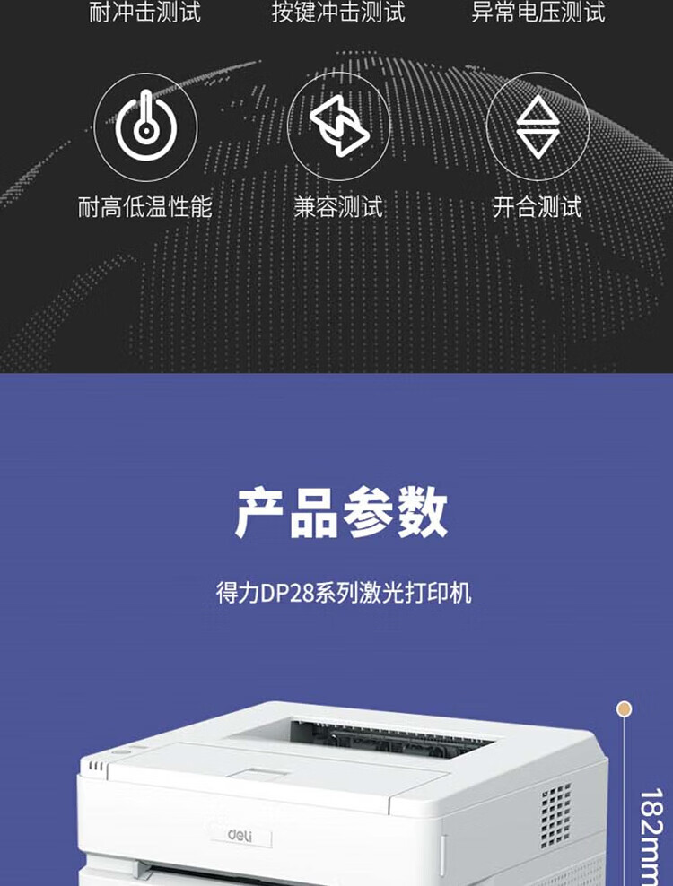 得力/deli DP28DN A4 黑白打印机 A4幅面黑白激光打印机 28页/分 自动双面打印