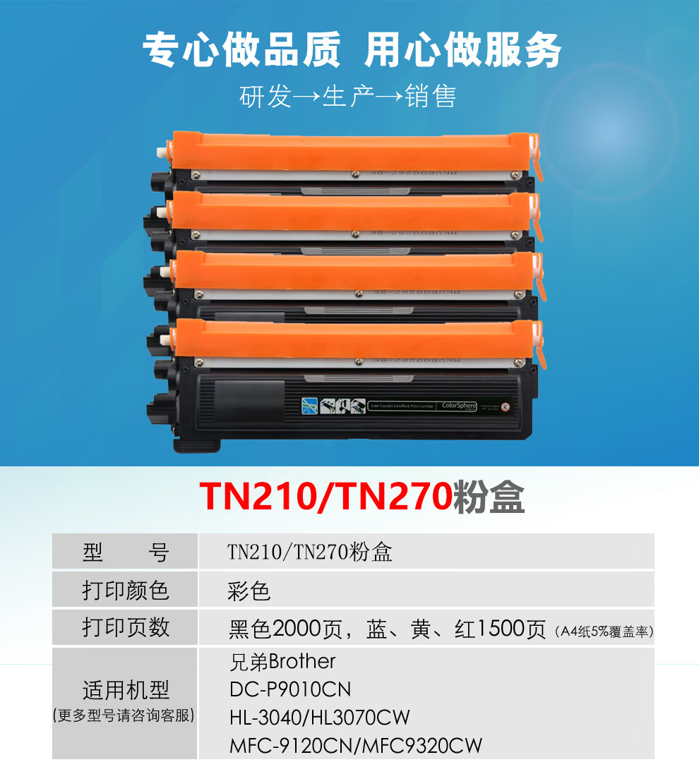金格/JG TN210Y 粉盒 黄色带芯片1500页 适用于兄弟DCP9010CN MFC9120CN MFC9320CW