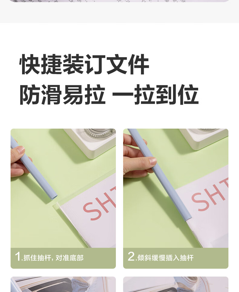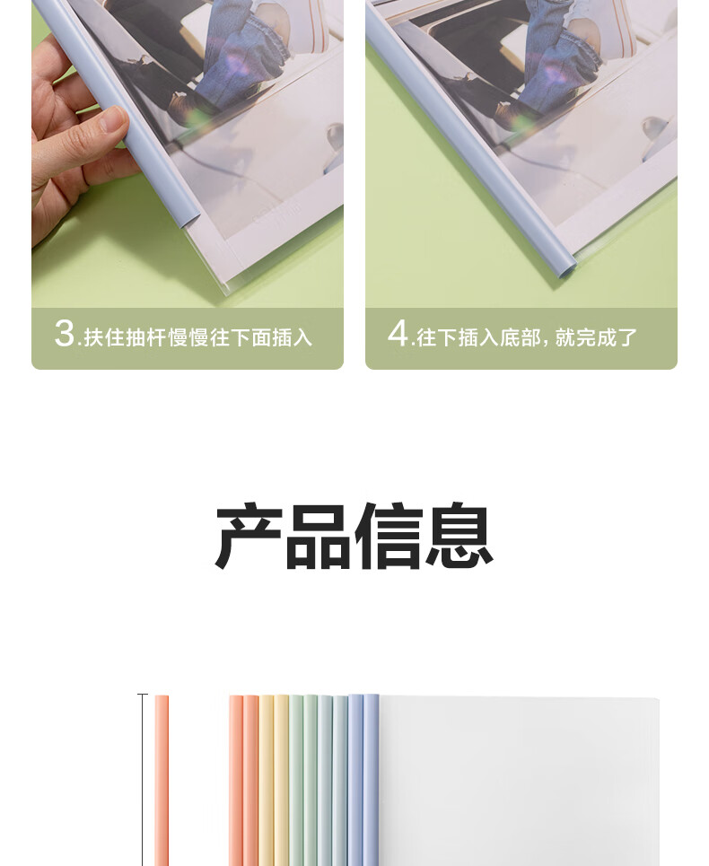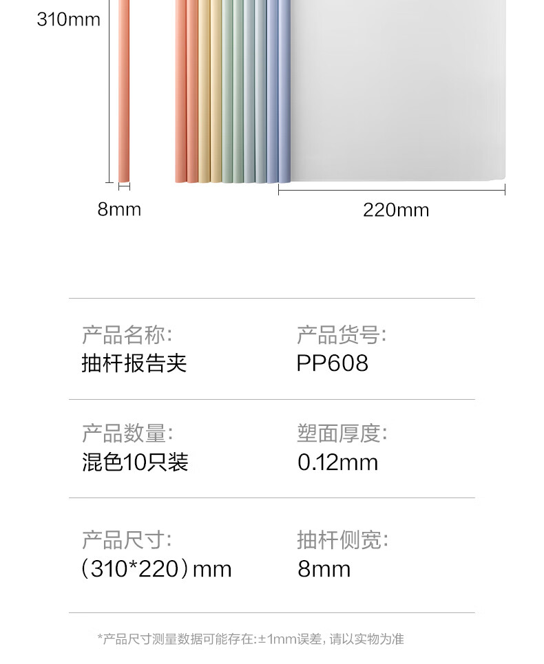 得力/deli PP608 文件夹 彩色水滴杆抽杆夹10只装 A4/8mm