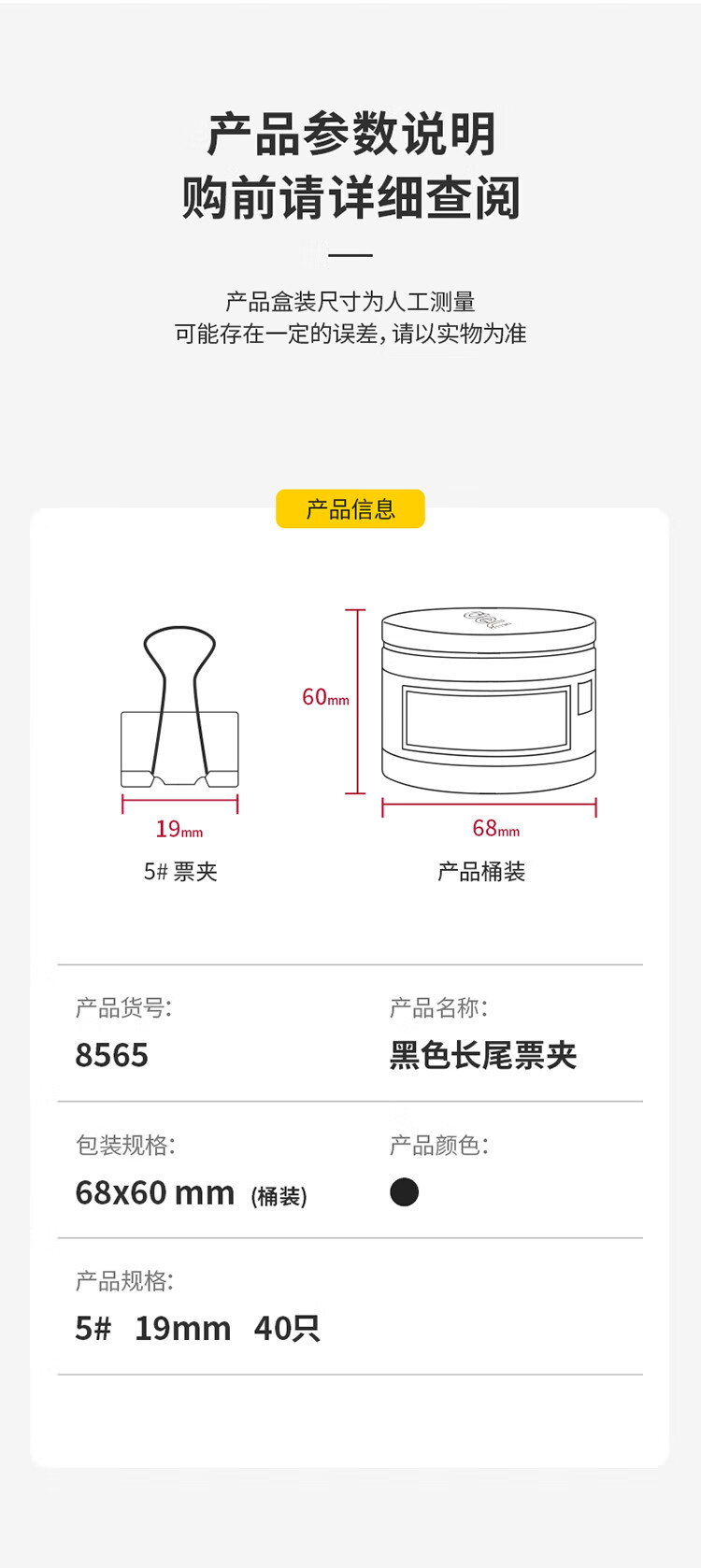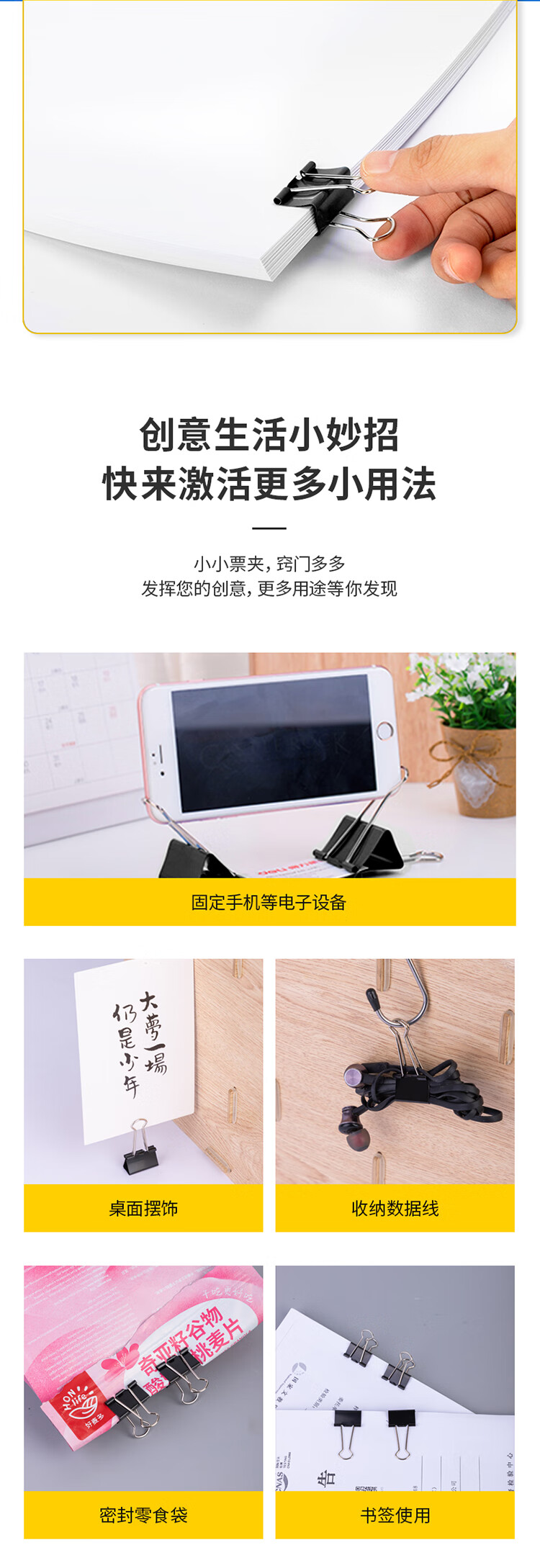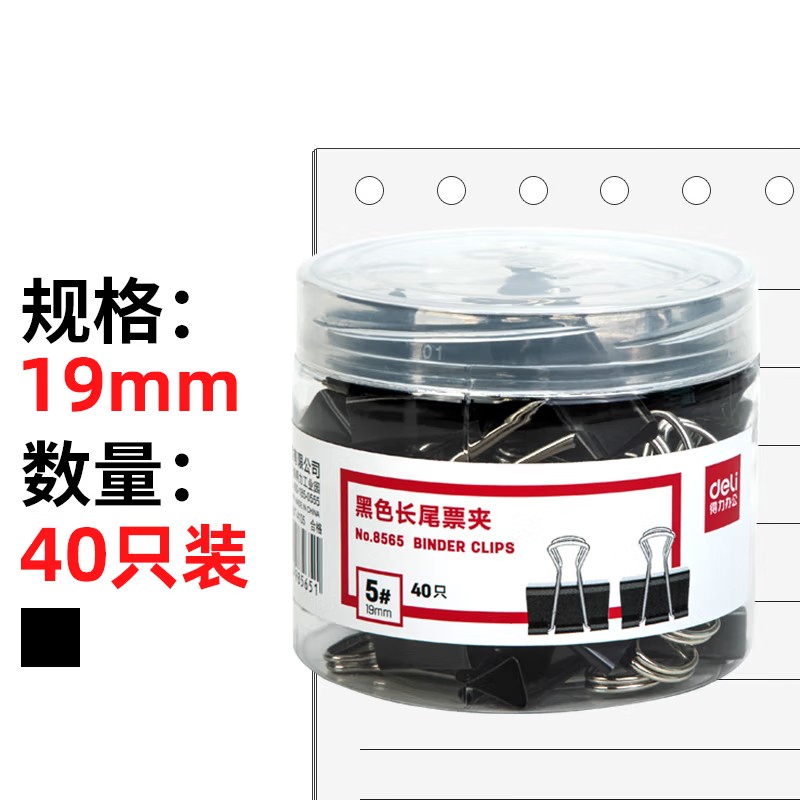 得力/deli 8565 长尾夹 19mm黑色长尾夹 40只/筒