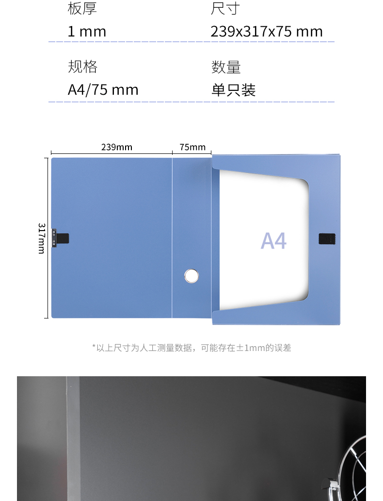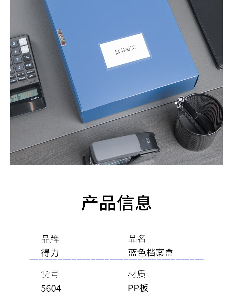 得力/deli 5604 档案盒 75mmA4文件盒 蓝色