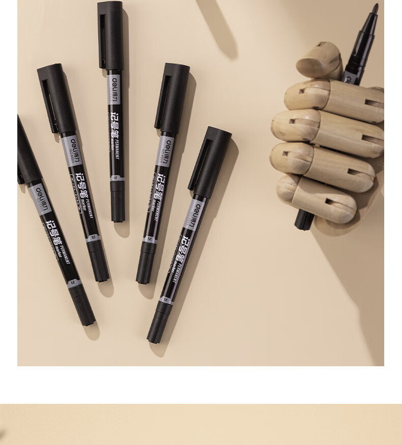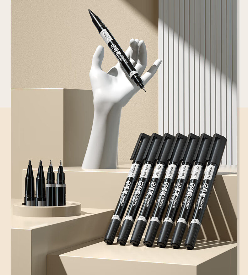 得力/deli 6823 书写用笔类用具 小双头多用记号笔 12支/盒 黑色